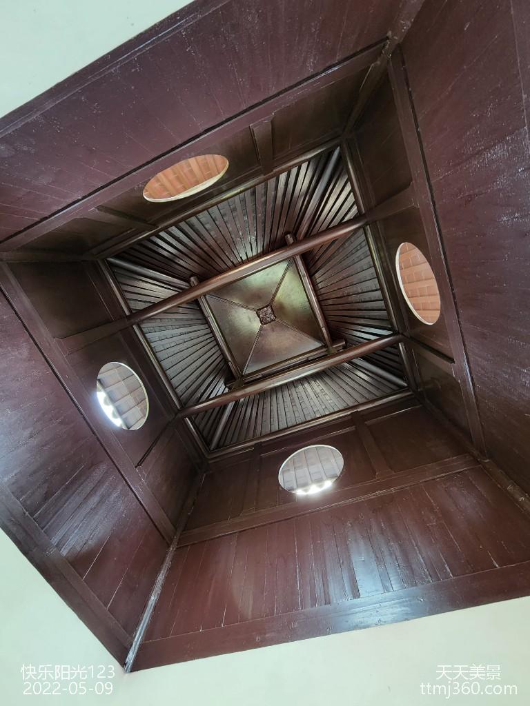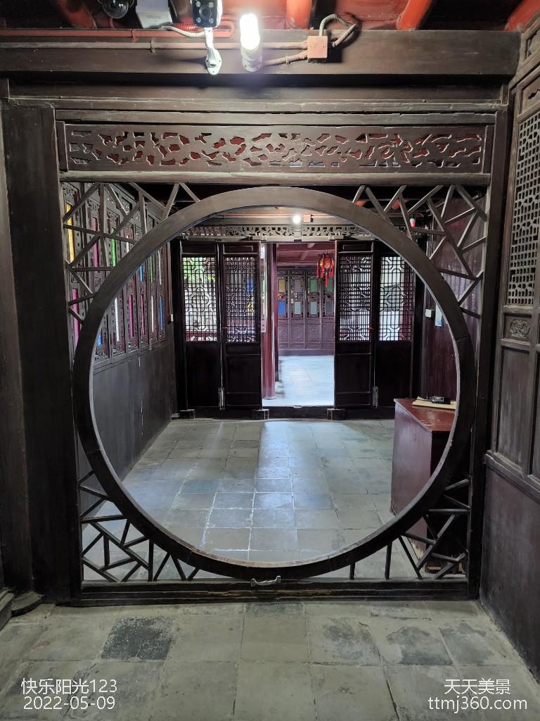 红木竹罩是以4块红木整板雕绣的竹石图立面,其叶叶清晰,刀刀分明,细枝楼空剔透,形态逼真,据说,当年工匠花了1千多个工日始成。